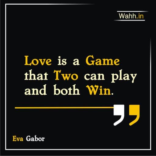 "प्यार एक ऐसा खेल है जिसमें दो खेल सकते हैं और दोनों जीतते हैं।"