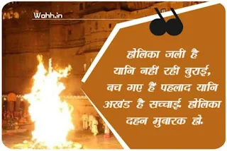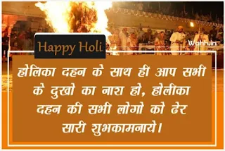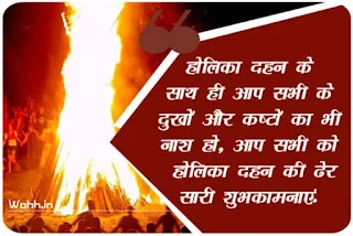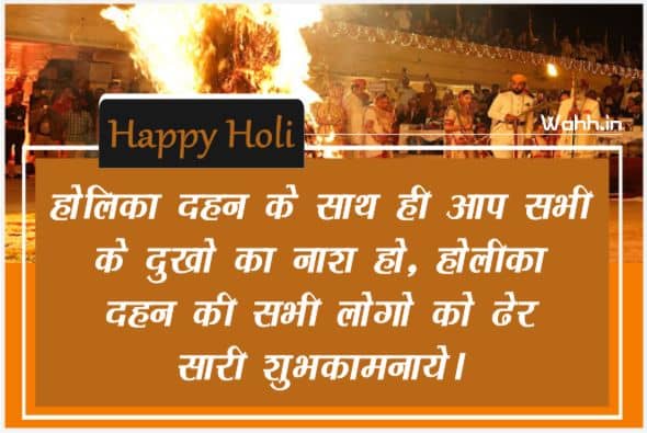 "होलिका दहन के साथ ही आप सभी के दुखो का नाश हो, होलीका दहन की सभी लोगो को ढेर सारी शुभकामनाये।" –